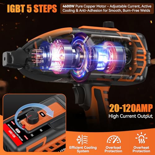 Salida de corriente de soldadura ajustable de 20-120 A: este soldador de mano proporciona corriente ajustable de 20 a 120 amperios, y una perilla de 5 posiciones para un ajuste preciso al tamaño del electrodo y el grosor del metal, asegurando un arco estable y una soldadura suave. Compacto y potente, es adecuado para una variedad de escenarios como bricolaje en casa, reparación de automóviles, procesamiento de metales, soldadura de cerca, etc. Es una herramienta ideal para el mantenimiento diario y la soldadura profesional
