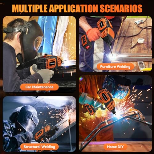 【Características inteligentes de refrigeración y seguridad】Esta pistola soldadora de mano está equipada con una fuerte entrada de aire y refrigeración inteligente de 360°. Este soldador incluye protección contra sobrecalentamiento y cortocircuito para garantizar un rendimiento estable bajo un uso prolongado. Las funciones integradas de arranque en caliente y antiadherentes facilitan el arco y las soldaduras son más suaves y limpias. La funcionalidad Plug-and-Play lo hace adecuado tanto para principiantes como para profesionales: seguro, simple y fácil de usar