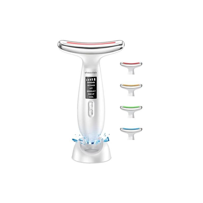 Masajeador Facial Eléctrico Cara Antiarrugas: Masaje Facial Lifting Reafirmante 5℃ Frio y 45℃ Calor – Aparatos Facials Mujer 6 Modos LED 4 Colores – Máquina EMS Belleza para Reafirmar Cuello Papada
