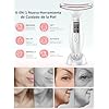 6 en 1 Masajeador Facial Antiarrugas: El aparato masaje cara y cuello con seis funciones independientes y cuatro colores de luces LED, brindándole un cuidado integral. La terapia con luz roja aumenta la actividad celular, acelera la circulación sanguínea y reduce arrugas. Luz verde calma las células, promueve el drenaje linfático y reduce la hinchazón. Luz azul estimula la síntesis de colágeno y tensa la piel. Luz naranja penetra profundamente en la piel para reparar y alisar líneas finas.