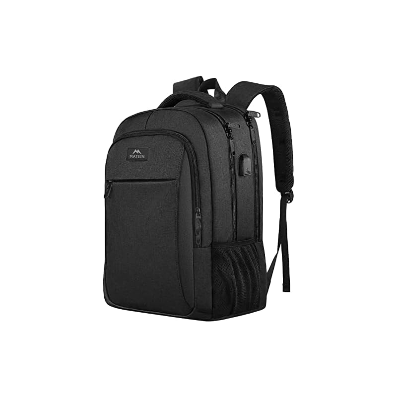 Especificaciones: MATEIN – Mochila empresarial para laptop de 15.6 pulgadas, mochila de viaje con puerto de carga USB, resistente al agua, para trabajo, universidad, para hombres y mujeres, color negro