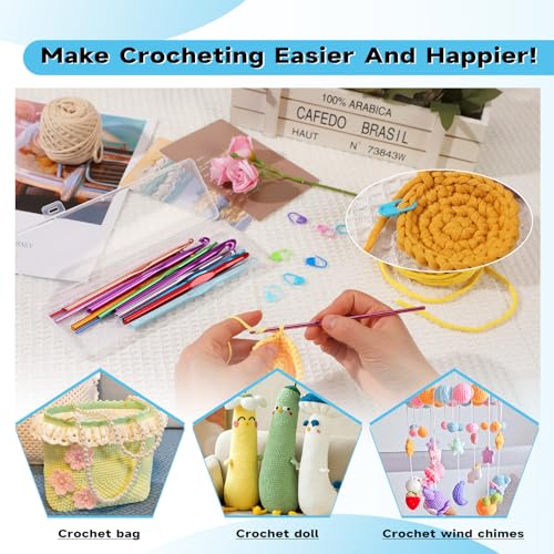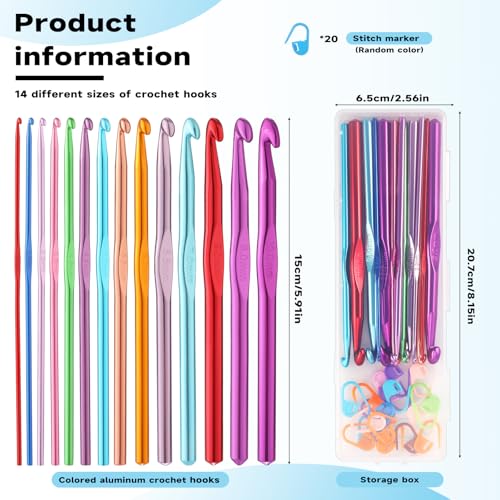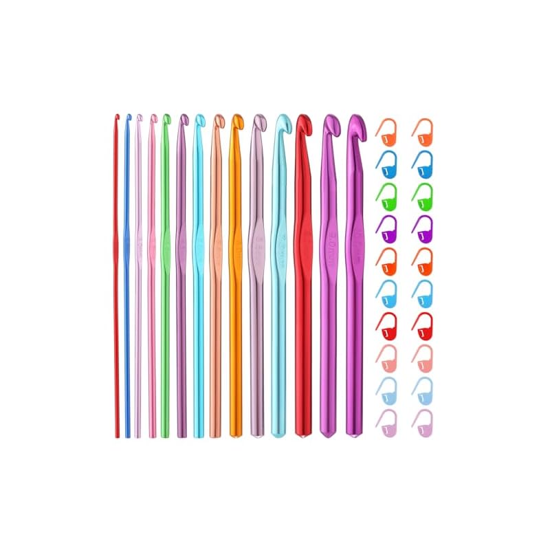 El paquete incluye: ganchos de ganchillo de varios tamaños (14 piezas) son adecuados para principiantes y avanzados. Venimos con 20 marcadores de punto de ganchillo para ayudarte a completar más proyectos, como calcetines, mantas, sombreros, etc