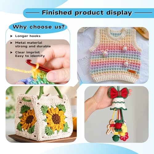 Especificaciones: Mayboos Juego de 35 ganchos de ganchillo, mango ergonómico de aluminio de colores, agujas de tejer de ganchillo para principiantes y experimentados ganchos de ganchillo