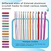Cómodo: el colorido gancho de ganchillo de aluminio está hecho de aluminio de alta calidad, que es ligero y duradero. La punta de la aguja es suave y no se enganchará ni rompe el hilo. El diseño ergonómico del mango no te hará sentir cansado después de tejer durante mucho tiempo