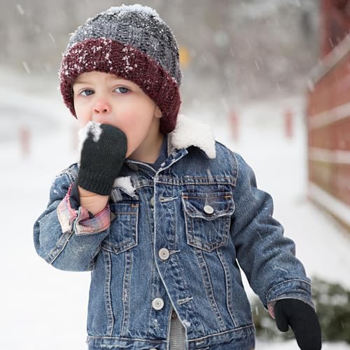 MENOLY 6 Pairs Toddler Magic Stretch Mittens Winter Warm Kids Knit Gloves for Little Girls Boys