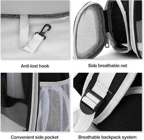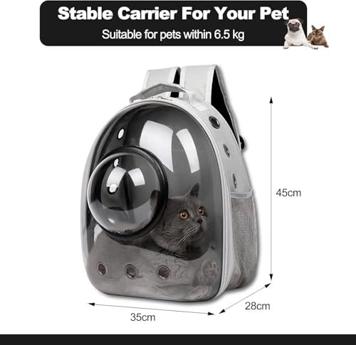 Mochila transparente para mascotas: la mochila para gatos está hecha de tela Oxford de alta calidad y material de PC, que es impermeable y duradero. El diseño de apertura con cremallera en el costado de la mochila para mascotas es conveniente para que la sonda para mascotas respire, puede interactuar con la mascota en cualquier momento y también es conveniente para alimentar a su cachorro o gatito. El tamaño de 35 * 45 * 28 CM es adecuado para mascotas que pesen menos de 5 kg