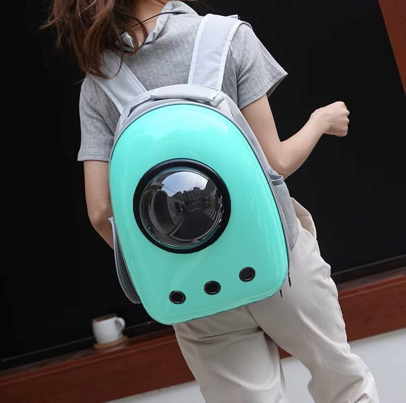 Mochila para Gatos, Mochila para Gatos Al Aire Libre, Mochila Impermeable Transparente para Perros, Mochila Mascotas con Cápsula De Espacio Ventilado(Verde Agua, Cúpula Transparente)