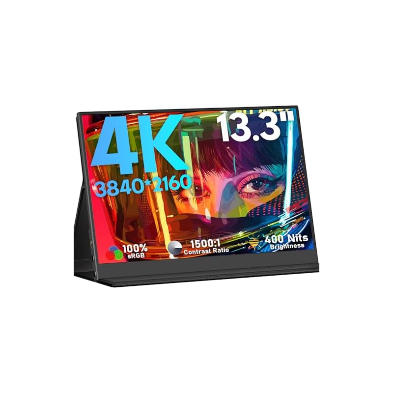 Especificaciones: Monitor portátil 4K de 13.3 pulgadas 3840 x 2160 UHD USB-C HDMI, monitor para laptop, 100% sRGB IPS pantalla de juegos HDR monitor de viaje con altavoces para laptop, Xbox PS5, conmutador de PC y teléfono