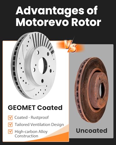 MOTOREVO Kits de frenos delanteros compatibles con Camry【2007-2017】Kits de discos de freno perforados y ranurados de aleación de alto carbono | Rendimiento de frenado mejorado con ventilación a medida