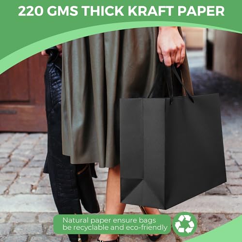 Mantenga regalos sin ninguna preocupación: diseñadas con una resistencia de papel de 220 GSM, las bolsas de regalo negras a granel están diseñadas para durar, capaces de soportar hasta 10 libras con un fondo reforzado. Puedes llevar con confianza regalos más pesados con bolsas de fiesta negras sin preocuparte por las lágrimas, asegurando el transporte seguro de varios artículos de regalo.
