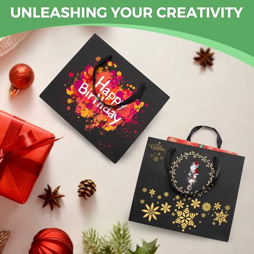 Dale espacio para ser creativo: da rienda suelta a tu creatividad con la superficie en blanco de estas bolsas negras para regalo, listas para pegatinas, dibujos a mano u otros elementos decorativos. Personaliza cada bolsa de regalo negra con asas para que sea verdaderamente única y destaque del resto.