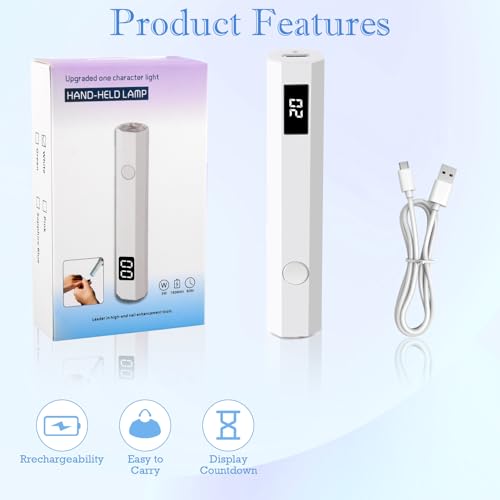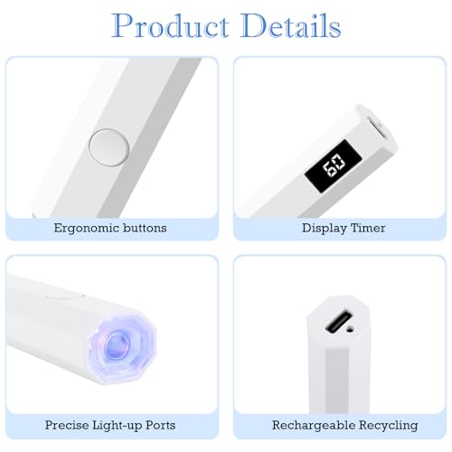 Especificaciones: MXTIMWAN Lámpara de Uñas, UV Portátil et Recargable, Luz Mano para Uñas de gel, con 2 Temporizador 20/60S, para Manicura, Resina de Extensión de Gel DIY Arte de Uñas Blanco