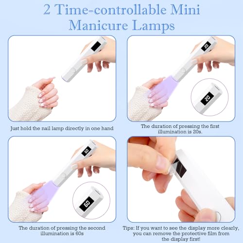 2 Modos de Temporización: Nuestra mini lámpara UV tiene 2 modos de temporización, 20 segundos y 60 segundos. Simplemente presiónela una vez durante 20 segundos; presiónela una segunda vez durante 60 segundos.