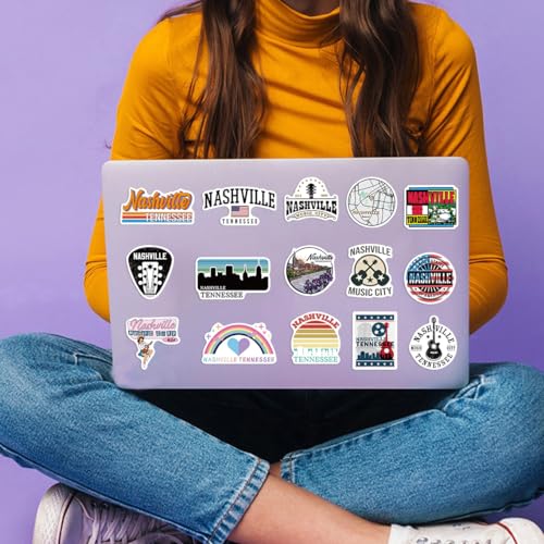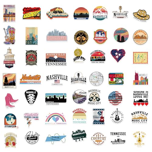 Nashville – Calcomanías de Tennessee (50 unidades) impermeables de vinilo Nashville Music City para botellas de agua, laptop, equipaje, computadora, teléfono móvil, monopatín, guitarra, casco