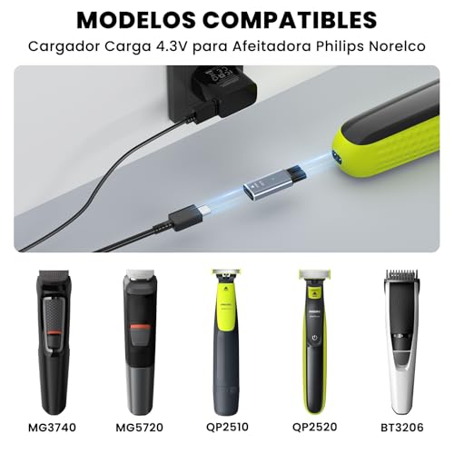 Especificaciones: Newding 4.3V A00390 Cargador Afeitadora para Philips One Blade QP2520 QP2620 QP2721 QP2821 MG3720 MG3730 MG5730 MG5720 BT3206 BT3208 BT405 QT4000 para OneBlade Adaptador USB (NO Cable)