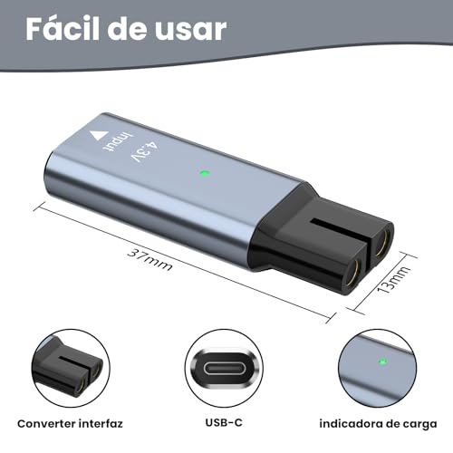 [Amplia Compatibilidad] 4.3V USB C Carga Converter for Afeitadora Philips QP2520 QP2620 QP2721 QP2821 MG3710 MG3711 MG3712 MG3720 MG3721 MG3722 MG3730 MG3731 MG3740 MG3747 MG3748 MG3757 MG3758 MG5720 MG5730 MG5735 MG5740 BT3203 BT3205 BT3206 BT3207 BT3208 BT3215 BT3216 BT3226 BT405 S1010 S1020 S1060 S1102 S1103 S300 S301 S321 S330 S331 S360 S510 S511 S512 S520 S526 S528 S530 S531 S538 RQ312 RQ320 RQ328 RQ330 RQ331 RQ338 RQ350