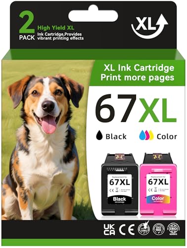 Especificaciones: Paquete combinado de cartuchos de tinta 67XL, color negro, compatible con HP Ink 67 para HP 67, cartuchos de tinta negro/color, paquete combinado para impresora DeskJet 2700 2755e 2855e 4155e 4255e