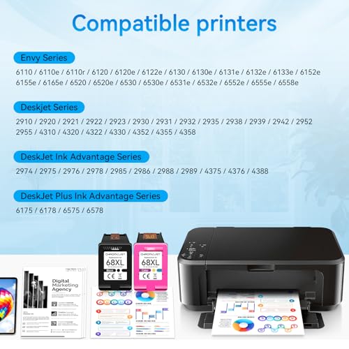 Recordatorio: comprueba la lista de modelos de impresora de esta tinta de impresora 68xl antes de comprar, y confirma que este cartucho de tinta de impresora 68 es compatible con tu impresora (este no es un producto OEM)