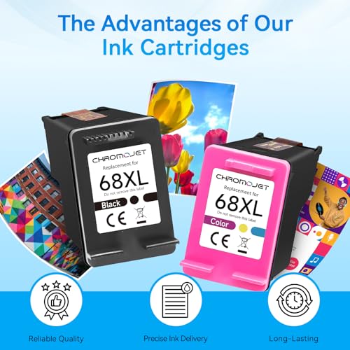Alto rendimiento de páginas: 730 páginas 68xl cartucho de tinta negra, 630 páginas 68xl cartucho de tinta de color. Basados en una cobertura del 5% de papel A4, nuestros cartuchos de tinta 68 xl hacen que tu proceso de impresión sea más eficiente
