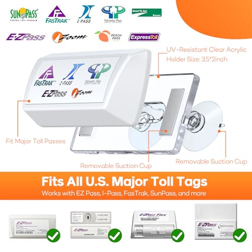 Especificaciones: Paquete de 2 soportes magnéticos EZ Pass para parabrisas – Compatible con EZ Pass, I-Pass, SunPass, FasTrak – Acrílico resistente a los rayos UV con ventosa para todo tipo de clima – Fácil