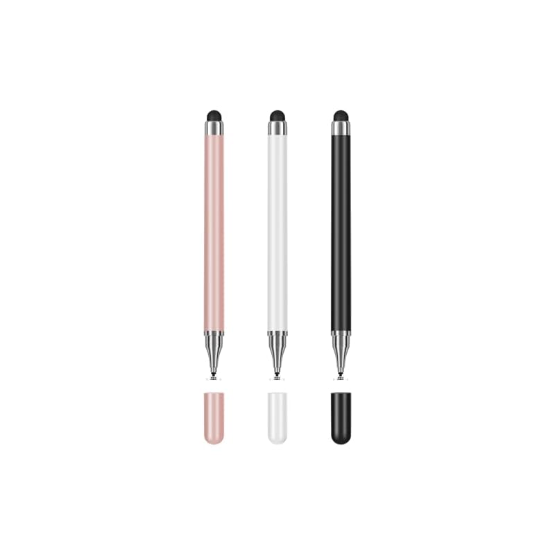 Especificaciones: Paquete de 3 bolígrafos para tabletas para todas las pantallas táctiles con punta de disco de precisión, lápiz digital universal 2 en 1 compatible con Android, iOS, Surface y teléfono, perfecto para