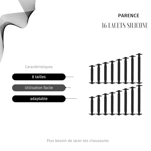 Especificaciones: PARENCE 16 Lacets Silicone, Mixte, Noir, Taille Unique