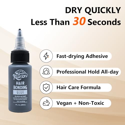 Especificaciones: Pegamento para el cabello de tejido rápido de 1 onza – Pegamento profesional de unión de cabello para pelucas y extensiones de cabello | Fórmula de sujeción fuerte, impermeable y no dañina | Fácil