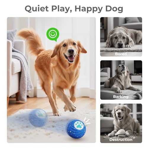 Especificaciones: Pelota interactiva para perros grandes – Juguetes para perros para masticadores agresivos para mantenerlos ocupados, material duradero de E-TPU, 3 modos de juego, bolas automáticas para perros
