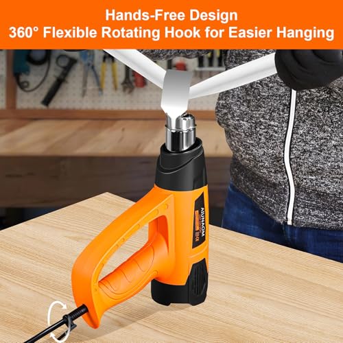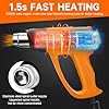 [Potente 2000 W y Excelente Diseño ]La pistola de calor cuenta con un motor de cobre puro de 2000 W y una turbina de alta velocidad, permitiendo un calentamiento rápido a la temperatura deseada en 1,5 segundos. La boquilla en espiral mejora la transferencia de calor, asegurando un control preciso de la temperatura y una distribución uniforme del aire caliente. El recubrimiento de protección de la boquilla, hecho de PP resistente al calor, previene los riesgos de quemaduras durante el trabajo