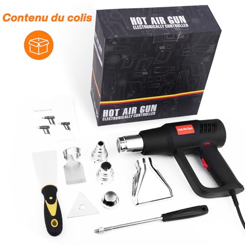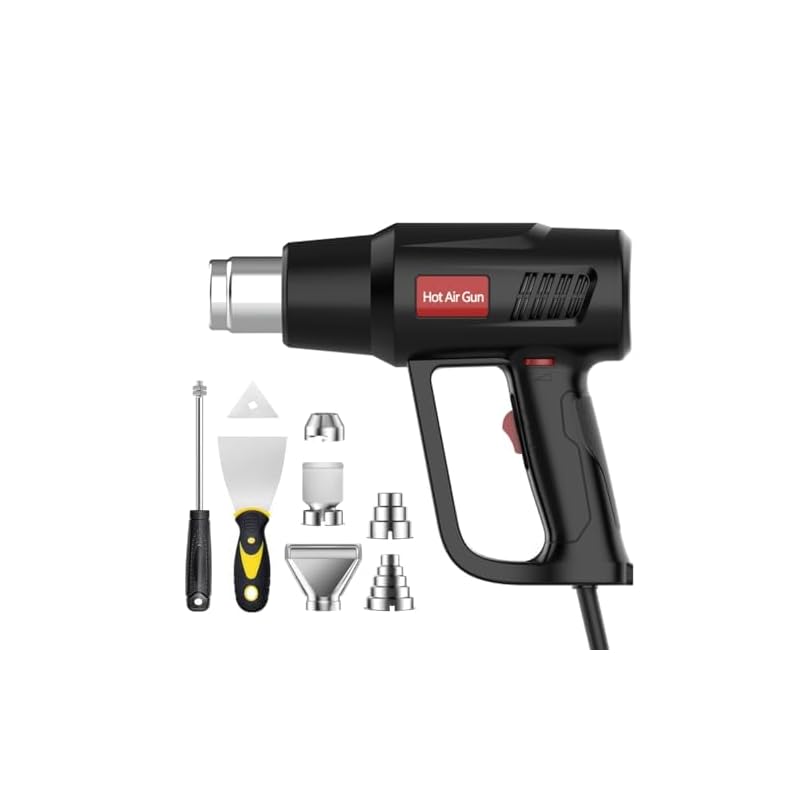 【¿Qué obtienes?】 Pistola de aire caliente*1; boquilla*5; raspador de mano*1; Si tiene alguna pregunta después de la compra, contáctenos. Nuestra tienda admite reembolsos o cambios.