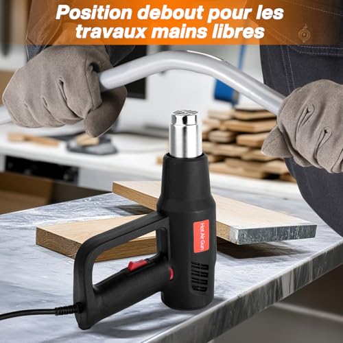 Especificaciones: Pistola de Calor de 2000 W, Pistola de Aire Caliente con Temperatura Ajustable de 50 ℃ a 650 ℃, 2 Volúmenes de Aire, Adecuada para Eliminar óxido y Descongelar, 8 Accesorios