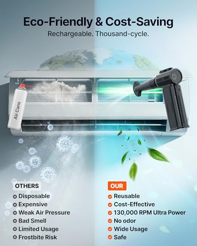 Rentable y reutilizable: el plumero eléctrico recargable reemplaza más de 1,000 aire enlatado desechable. Solo flujo de aire seco y estable, protege tus dispositivos de daños, mezclando el respeto al medio ambiente con precisión de alta tecnología.