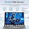 【Pantalla HD de visión completa de 16″】 Sumérgete en imágenes vibrantes en el panel IPS Full HD de 16 pulgadas (1920 x 1200). Con una relación pantalla-cuerpo del 90% y un aspecto de 16:10, amplía el espacio de trabajo para streaming, diseño o tareas diarias. El material del panel antirreflejo reduce la fatiga ocular en un uso prolongado, mientras que la calibración precisa del color ofrece imágenes realistas, ideal para creadores y usuarios de productividad