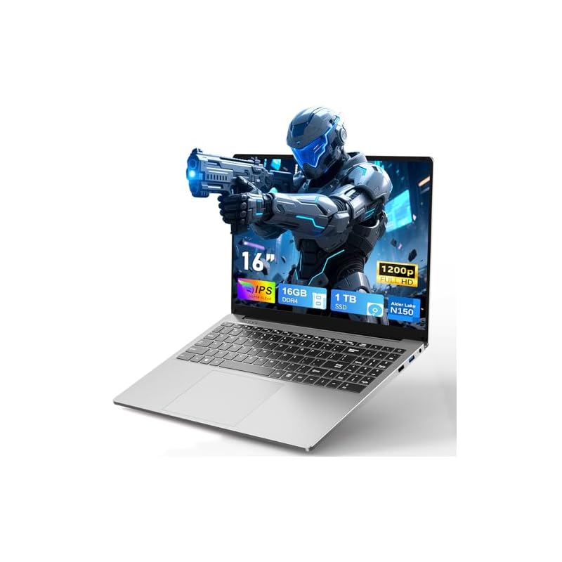 Especificaciones: Portátil para juegos, computadora portátil 2025 de 16 pulgadas, procesador N150 (4C/4T, hasta 3.6 GHz), 16 GB de RAM 1 TB SSD, WiFi 5, BT4.2, FHD de 16 pulgadas 1920 x 1200 (16:10), teclado