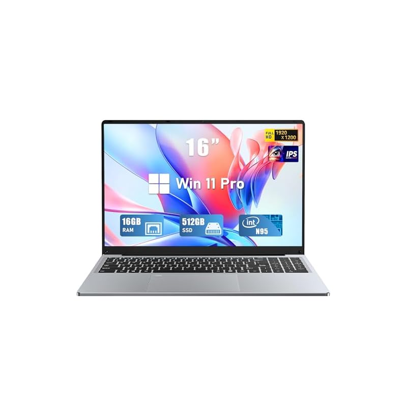 FUNYET Portátil para juegos, pantalla FHD de 16 pulgadas (1920 x 1200), computadora portátil N95 (hasta 3.4 GHz), 16 GB de RAM 512 GB SSD, admite apertura de ángulo de 180, Bluetooth, teclado retroiluminado, Win 11 Pro