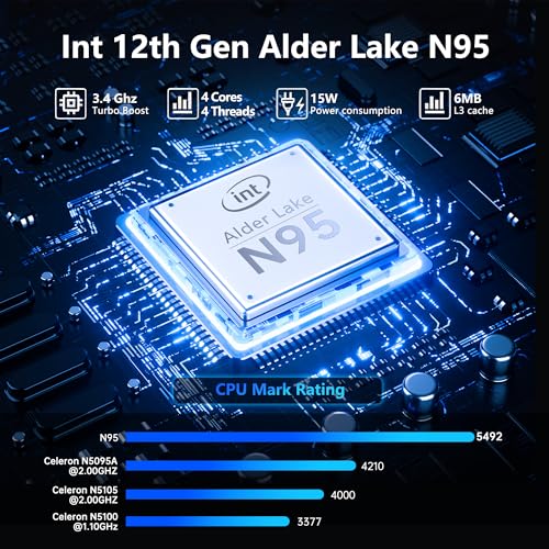 [Procesador avanzado]: La computadora portátil cuenta con la última generación de procesador Alder Lake N95 de 12ª generación con frecuencia de impulso de 3.4 GHz, 4 núcleos y 4 hilos, proporcionando un rendimiento potente para multitarea, transmisión y juegos.