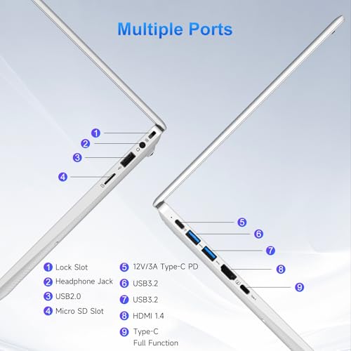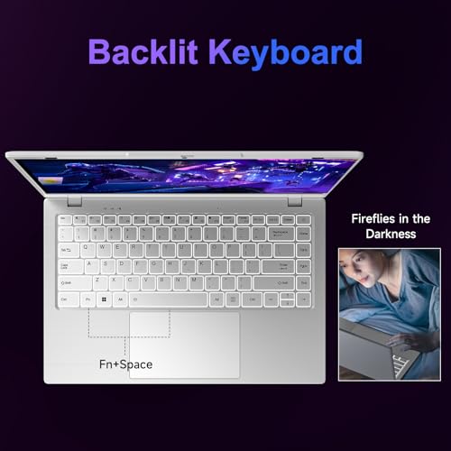 Especificaciones: Portátil ultrafino de 14 pulgadas, procesador N150, 12 GB LPDDR5 RAM 512 GB SSD, pantalla FHD IPS, Windows 11 Pro y Office 2024, batería de larga duración, WiFi 5/BT 5.0, plata para