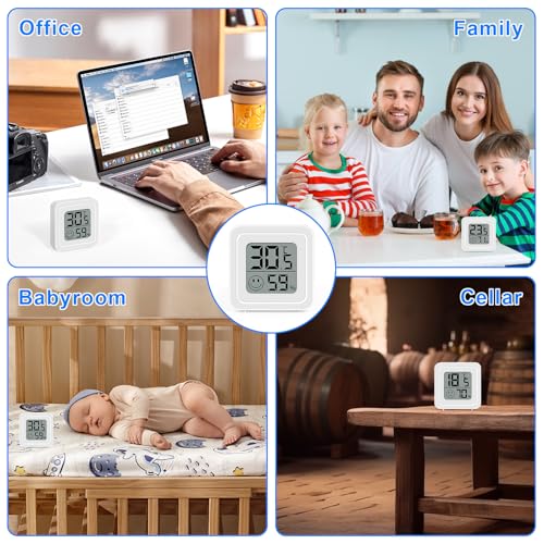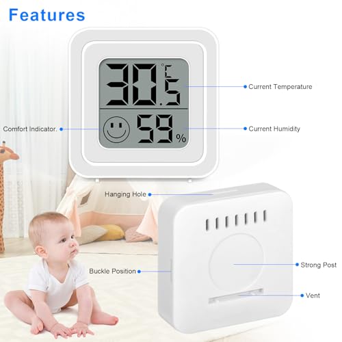 【Instalación conveniente】: Nuestro Interior Mini Higrómetro tiene pegamento en la parte posterior, que se puede instalar en cualquier lugar que quieras instalar, pero requiere que el lugar de instalación esté seco; Se puede poner sobre mesas, paredes y otros lugares.