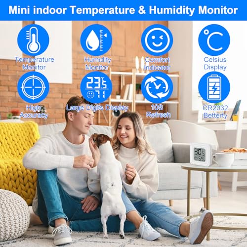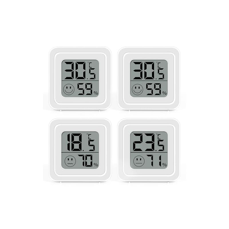 Especificaciones: PQETBV Mini Higrómetro Digital, 4 Piezas Higrometro Digital Termometro, Sensor de Temperatura de Humedad para Termometro Higrometro para Hogar Oficina Dormitorio Jardín