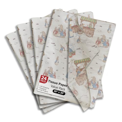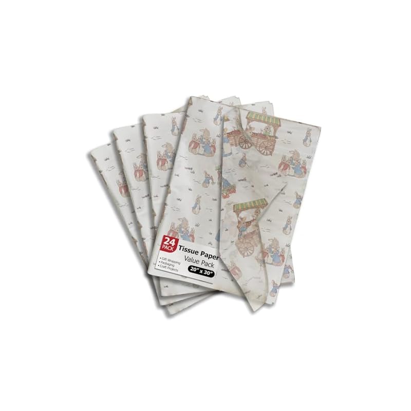 Pro Supply Global Peter Rabbit – Papel de seda impreso para bolsas de regalo o cajas y envoltura, papel de seda decorativo a granel para baby shower, para embalaje y regalo, 24 hojas de 20 x 30