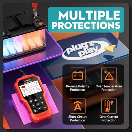 Seguridad diseñada para uso en el mundo actual: Su seguridad es nuestra prioridad. El analizador de batería BT500 cuenta con protección 5 en 1 contra riesgos comunes como polaridad inversa y cortocircuitos. Encapsulado en un cuerpo de ABS resistente a los golpes con un agarre antideslizante, el pequeño probador de batería está diseñado para su uso en compartimentos de motor estrechos y en garajes desordenados. Sus clips de alta calidad garantizan una conexión segura, dándote tranquilidad con cada prueba. Además, con soporte para 12 idiomas, se adapta a diversos usuarios
