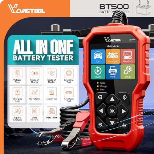 Probador de Batería de Automóvil 6V 12V 24V VDIAGTOOL BT500, Probador de Carga de Batería 5-3000 CCA, Probador de Alternador y Motor de Arranque, Analizador del Sistema de Carga y Arranque Automotriz