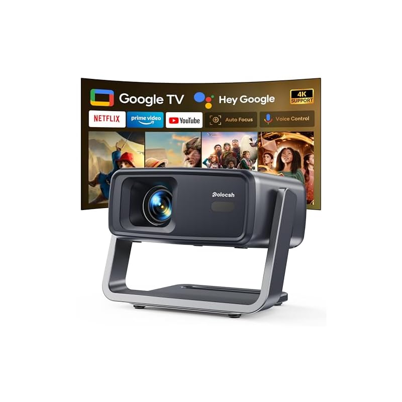 Especificaciones: Proyector 4K con WiFi y Bluetooth, proyector inteligente con enfoque automático y control de voz, más de 10,000 aplicaciones de cine en casa mini proyector portátil para interior/exterior