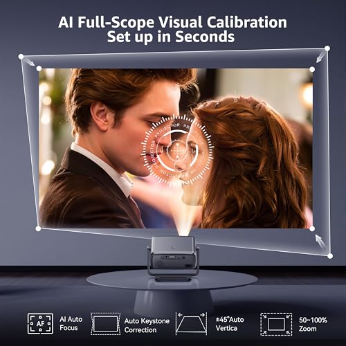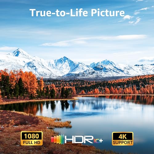 Proyector nativo 1080P compatible con 4K y HDR10+: este proyector 4K cuenta con tecnología de mejora de imagen AI, brillo ultra alto, precisión de color de grado cinematográfico NTSC del 99%, una increíble relación de contraste FOFO de 1600:1 y el espectro de color más amplio, sumergiéndote en los colores más ricos y dando vida a cada escena. Esto lo convierte en un proyector inteligente ideal para ver películas en casa, jugar juegos o noches de cine al aire libre. (Nota: Los videos etiquetados como 4K se mostrarán a una resolución nativa de 1080P, a menudo denominada ‘compatible con 4K’)