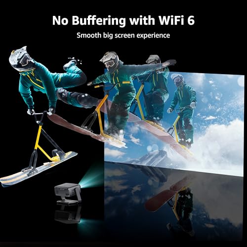 [WiFi 6 y Bluetooth 5.3] La tecnología WiFi 6 ofrece velocidades de hasta 9.6 Gbps, casi tres veces más rápido que WiFi 5, para una transmisión más suave, juegos y duplicación de pantalla. Y conecta PS5/Switch a través del puerto HDMI para juegos sin retrasos. Este proyector Bluetooth también cuenta con potentes altavoces integrados de 2 x 10 W y Bluetooth 5.3 para una fácil conexión a tu sistema de sonido existente.