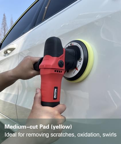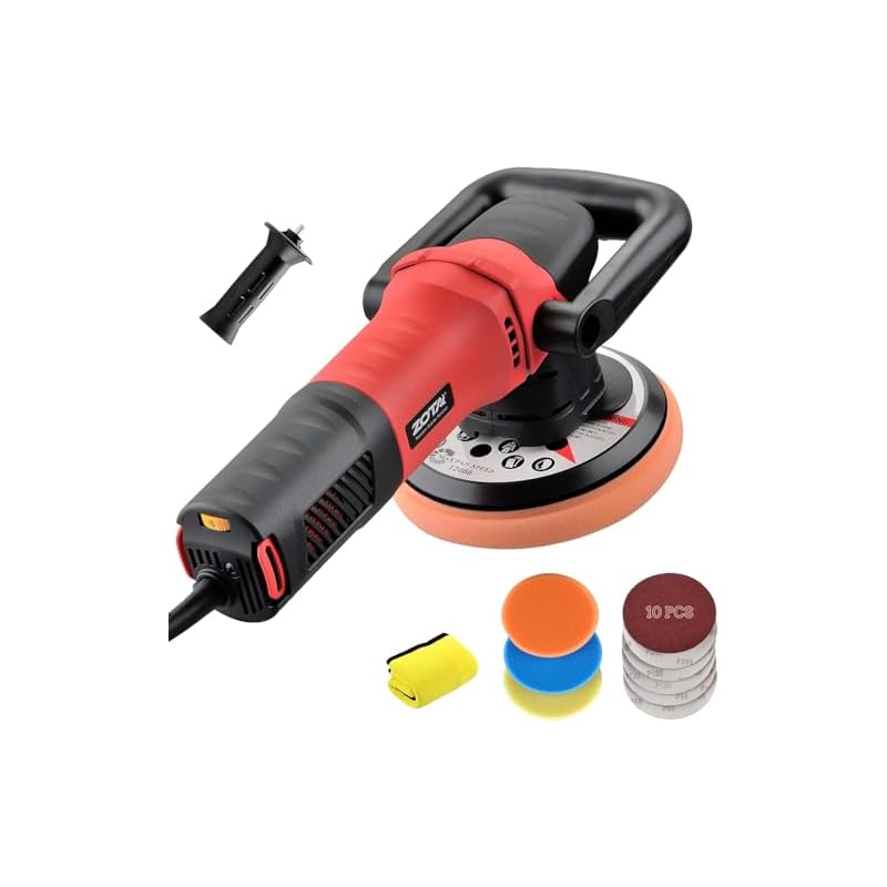 Potente motor de 6 velocidades para cada tarea: el amortiguador de coche utiliza un motor de cobre. Toma el control total con un dial de velocidad variable (2000-6000 RPM). ofrece una potencia constante sin detenerse bajo presión. Bajo (2000-3000 RPM): Seguro y eficaz para aplicar cera y selladores. Medio (3000-4500 RPM): Ideal para pulir y limpiar en general. Alto (4500-6000 RPM): lo suficientemente potente para cortar a través de la oxidación pesada y eliminar arañazos profundos.
