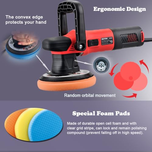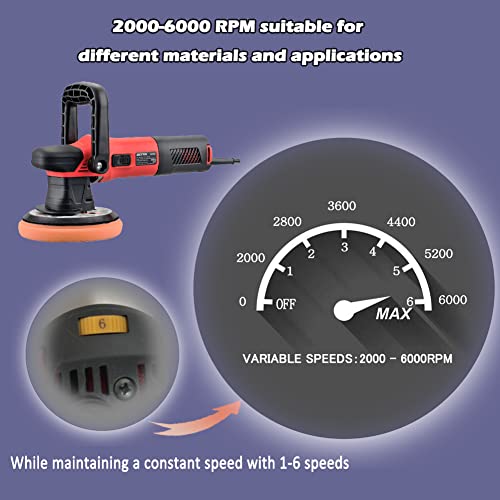 Especificaciones: Pulidora de búfer para automóvil, pulidora orbital de 6 pulgadas, pulidora de doble acción con 6 velocidades variables, pulidora orbital Ramdom de 750 W para detalles de automóviles, kit de