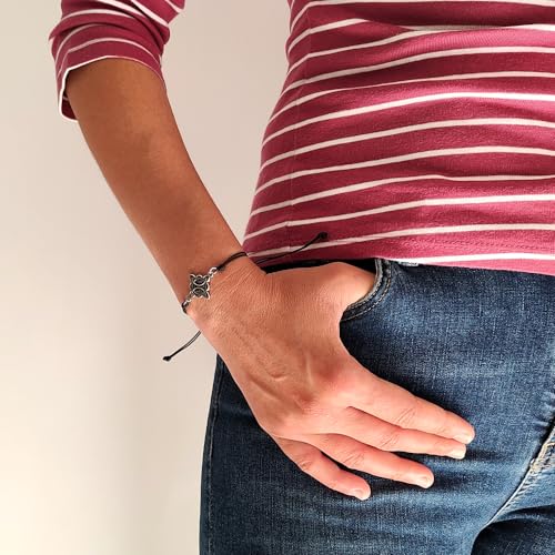 Especificaciones: Pulsera Nudo de Bruja con hilo negro en plata – Estas pulseras mujer son amuletos de la suerte y proteccion – Ajustable a todas las tallas, se envía en una cajita de regalo