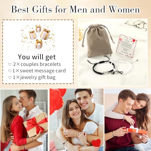 Pulseras de regalo para parejas, pulseras a juego, pulseras de cuerda ajustables para parejas, Navidad, aniversario, San Valentín, regalos para él, su novio, novia, amantes, esposo y