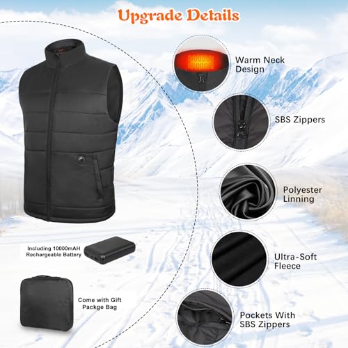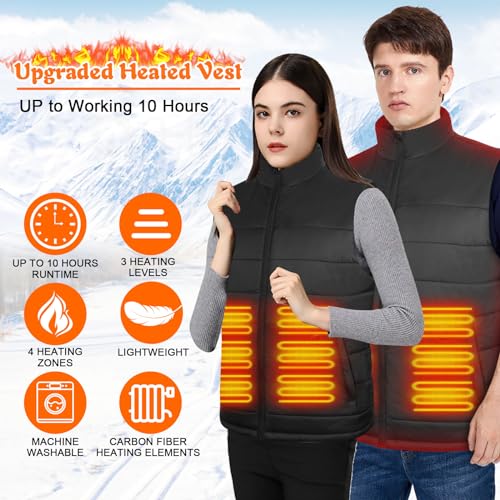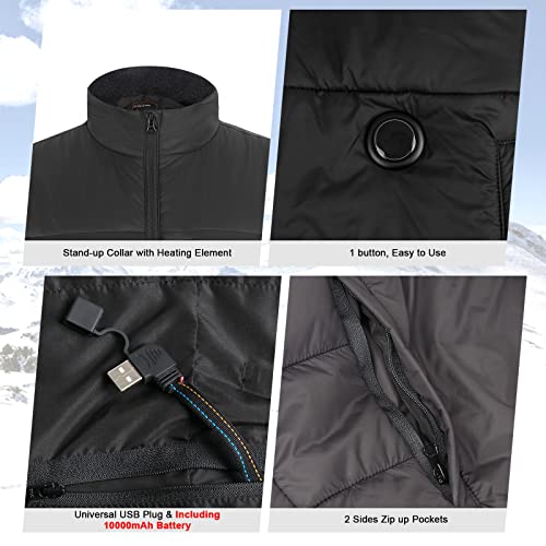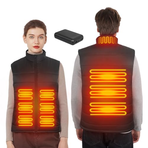 Qdreclod Eléctrico Chaleco Calefactable para Hombre Mujer, Chaleco Térmico Eléctrico con Batería de 10000mAh 5V con 3 Temperaturas, Chaleco Calentador de Calentamiento Ligero